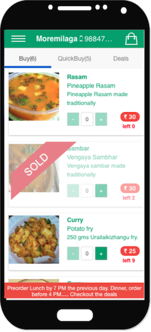 High Class Vegetarian Home food! Moremilaga..... Need we say more!